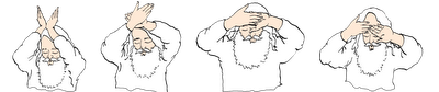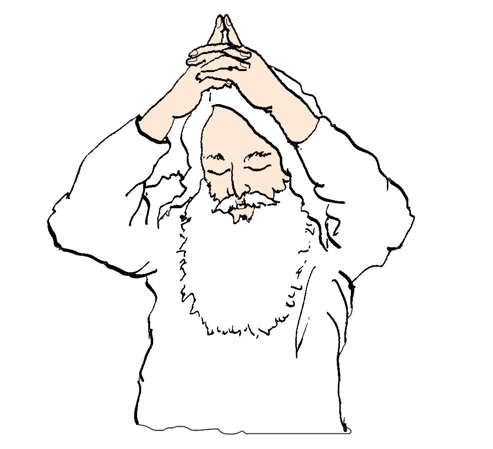 Cuando los comenzales repiten, quien hace la oración, sube las manos por encima de la cabeza, une las palmas, juntando las zonas que corresponden a la energía del Maestro de Corazón. Abriéndolas y haciendo bisagra desde la zona de DA LING… Girando una palma sobre la otra, hasta deslizarse, en señal de purificación, por el dedo medio, trayecto de Maestro Corazón.